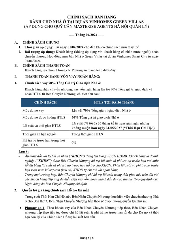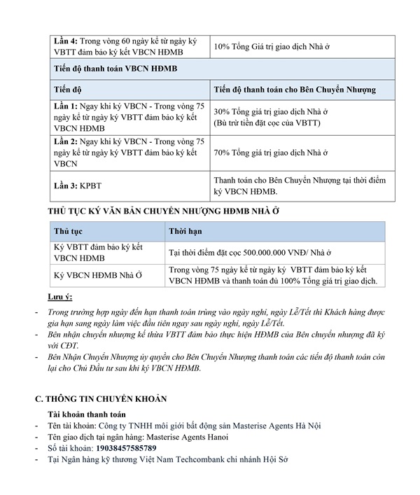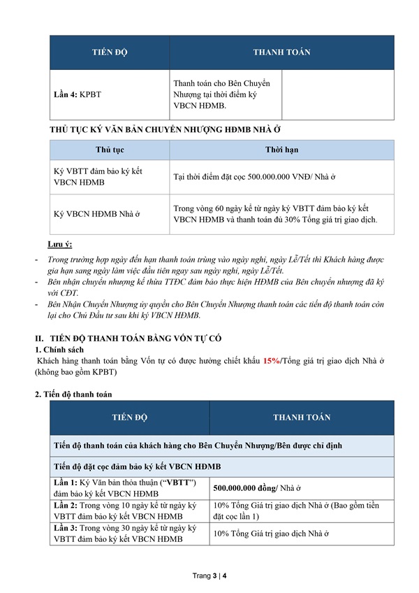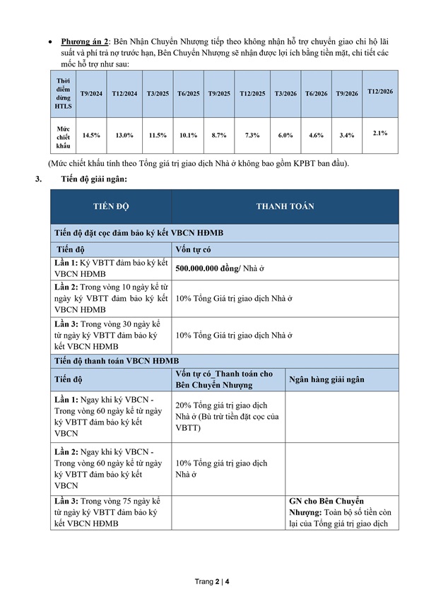– Khách hàng nhận nhà ở ngay khi thanh toán 30% GTBT và ngân hàng hỗ trợ vay 70% ân hạn gốc lãi lên đến 36 tháng. (Chiết khấu lại dòng tiền khi KH ko muốn vay, KH dc nối tiếp khoản vay).
