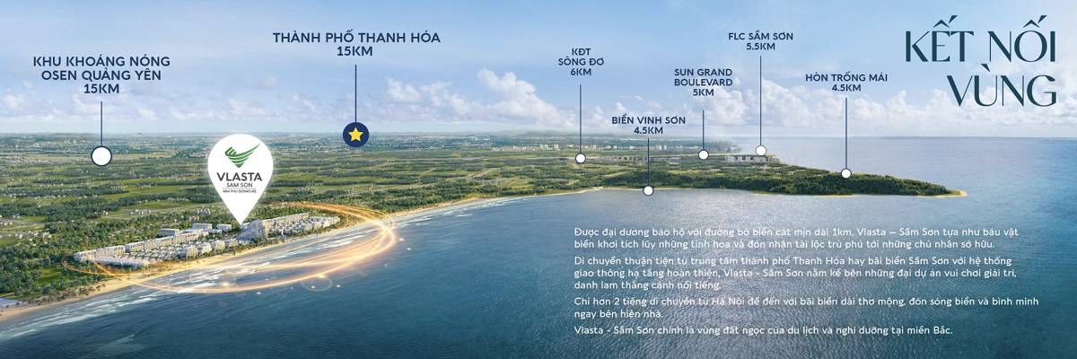 Dự án Vlasta – Sầm Sơn là Tổ hợp đô thị biển và du lịch nghỉ dưỡng tiên phong khai phá vùng biển Nam Sầm Sơn đầy tiềm năng. Dự án có vị trí đắt giá, nằm bên bờ biển xanh, cát mịn dài 1km, kết hợp cùng chuỗi tiện ích hiện đại.