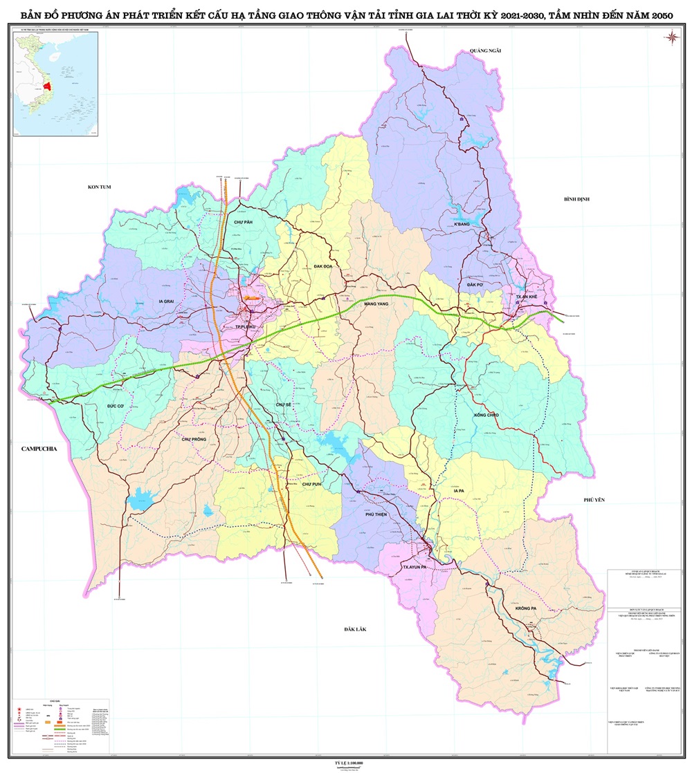 Trong đó, cửa khẩu quốc tế Lệ Thanh là cửa ngõ quan trọng trên Hành lang Đông – Tây kết nối vùng Nam Trung Bộ, Tây Nguyên. Cảng hàng không Pleiku hướng tới là cửa ngõ quốc tế trung tâm trung chuyển hành khách và hàng hoá của tiểu vùng Bắc Tây Nguyên.