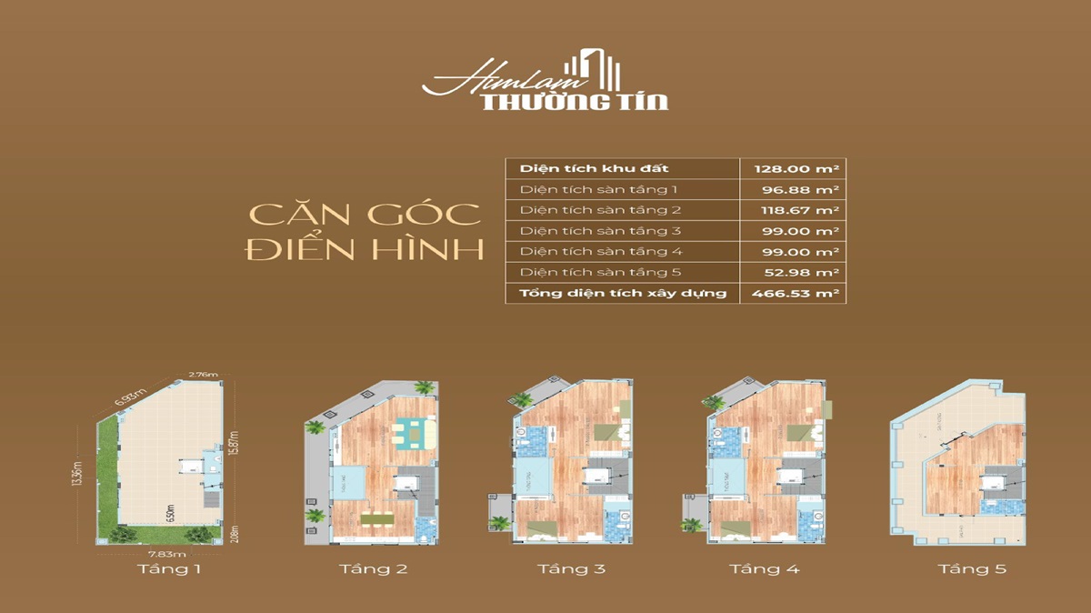 Diện tích đất: Từ 69.3 m2 – 157,8 m2. Mặt tiền rộng: 5 – 9.3m