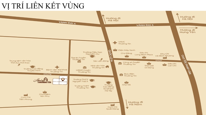 – Tâm điểm tại cửa ngõ phía Nam Thủ đô, kết nối trung tâm Hà Nội qua 2 tuyến đường huyết mạch QL1A và cao tốc Pháp Vân – Cầu Giẽ.