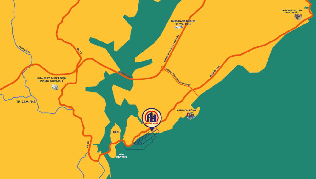 Sở hữu vị trí đắc địa ngay cửa ngõ khu kinh tế Vân Đồn, ngay mặt đường tỉnh lộ 334 và có đường 58m cắt ngang, Khu đô thị Phương Đông được quy hoạch để trở thành một tổ hợp nghỉ dưỡng & giải trí sôi động bậc nhất khu vực.