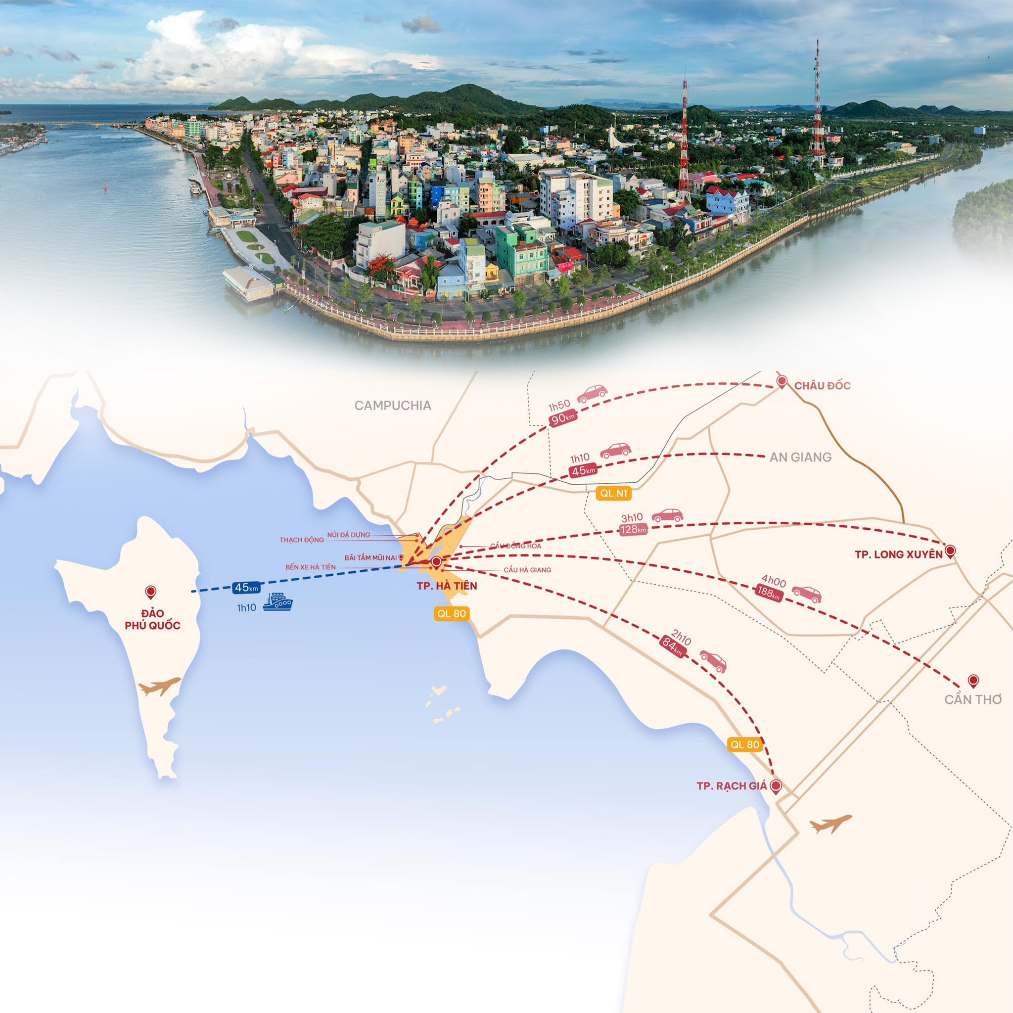 Bên cạnh những thế mạnh du lịch sinh thái, biển đảo và nhiều đền chùa, lễ hội văn hóa đặc sắc, Hà Tiên còn nhanh chóng trở thành lựa chọn hàng đầu cho các kỳ nghỉ tại miền Tây vì vị trí thuận tiện kết nối. Du khách từ mọi miền có thể di chuyển đến Hà Tiên thông qua nhiều hình thức linh hoạt thời gian.
